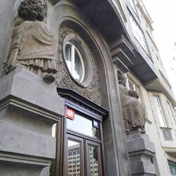 一旁接連著的建築是市民會館。在捷克的建築和政治史上都是一座重要建築,目前裡面是音樂廳和咖啡館,1918年這裡曾是捷克斯洛伐克宣布一分為二的地點。