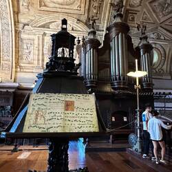 一個古老的建築,內部裝潢很像古老的宮廷,表演去有三位表演者正在彈奏著樂器,服務生帶我入座後便排隊去自助吧拿食物了。
