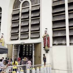 傳說中黑耶穌是大航海時代貫通墨西哥、菲律賓大帆船航線抵達菲律賓,帶到菲律賓它經歷了一場火災,全部貨物被燒的面目全非只留下烈火中完好保存下來的耶穌扛著十字架的雕像。而這座教堂裡就擺放著這尊黑耶穌供後人景仰,地鐵站附近就開始遇到很多人的額頭畫著黑十字,似乎要進教堂禱告的人都會在門口被牧師祈福,在他們的額頭上畫十字。我從門的另一側進入教堂,就感受到這寧靜莊嚴的氣氛,上百人在教堂內禱告著,場面非常壯觀。