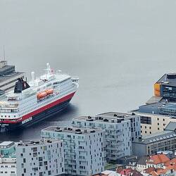En dessus de Bergen se trouve un lieu d'excursion qui s'appel Fløyen, on y accede par un funiculaire suisse 🇨🇭 qui vient d'etre modernise Tres belle vue panoramique sur Bergen