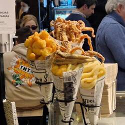 Der Mercado de San Miguel ist der Tapas Tempel von Madrid. Hier treffen sich die Leute an Heilig Abend, um mit Freunden und Familie Tapas und ein Gläschen Wein zu genießen.