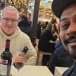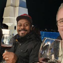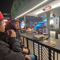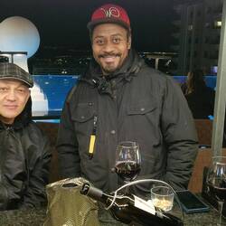 Nach dem Abendessen Spaziergang durch die weihnachtlich beleuchtete Stadt zurück zum Hotel. Traditionell mit Eddy oben auf der Dachterrasse eine Flasche Wein getrunken.