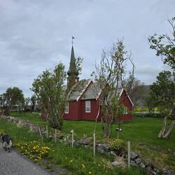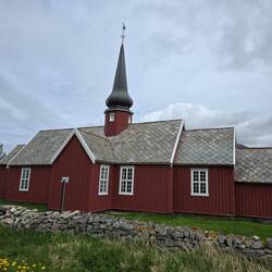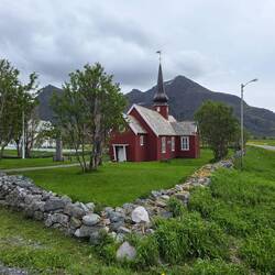 Sie ist klein, im Falun Rot gestrichen und aus Holz. Niedlich, skandinavisch und passt perfekt in das Bild der Lofoten.