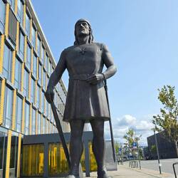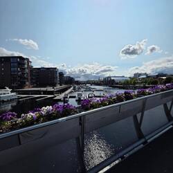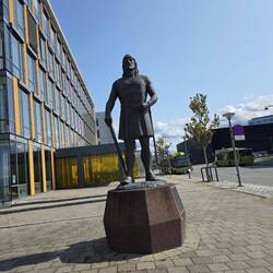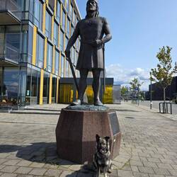 Bei wunderschönem Wetter spazieren wir durch das schöne Trondheim bis zu Leiv Erikkson.