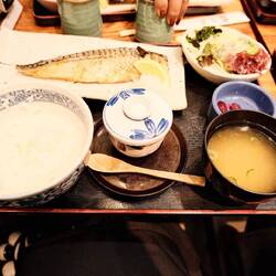 Unfortunately the much coveted Hinaimoto Hinai Chicken Oyakodon has closed down, and has most likely not recovered due to the pandemic. We were sad, but also hungry, so we chose the close by seafood restaurant. Mom and my sister had the miso soy mackerel set meal, whereas dad and I had the same one but with plate of sashimi.