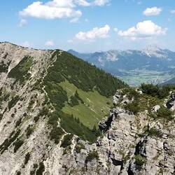 Von hier sieht man die Schneereste auf dem 2592m hohem Hochvogel.