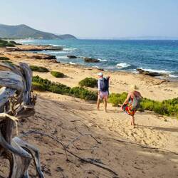 Der Wind steht so, dass die Bucht besser als der Chiringay ist.