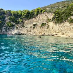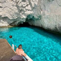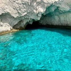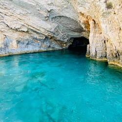 Waters 🌊 around Zakynthos often have electric light blue 🩵🩵🩵colour because of the numerous sulphurous caves around the beach and when the sea is rising a large quantity of sulphur radiates, giving the possibility of taking beautiful pictures. We did just that on our Turtle 🐢 island and Kerri caves boat tour… We took to the spectacular, calm blue waters of the Adriatic Sea for a Slo-mo boat 🛥️ ride (turtle pace) to this part of the heritage listed island. We were a little bit worried about the time (5 hour trip) and getting back to the ship before it sailed off without us! We actually saw turtles 🐢 at the bottom of the crystal clear ocean as we passed through the cove. ☀️ 🌊 🇬🇷 Just so cute!