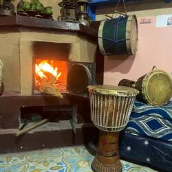 Am Sonntag, d. 22.12. passierte scho‘ a weng. Frühstück im Riad auf der Dachterrasse bei 5 Bft und 12 Grad - war schon frisch dort…