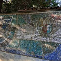 Ein Rundgang über den Friedhof mit außergewöhnlicher Grabsteingestaltung, vorbei an 4 Herren die es sich gemütlich gemacht haben, Springbrunnen, Mosaik, Samarkand bietet an jeder EckeBaca lagi