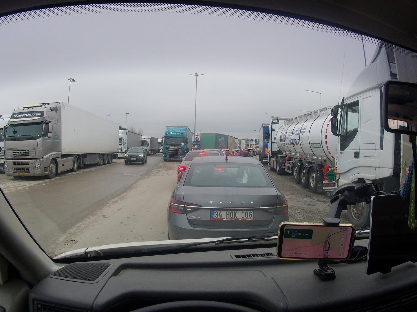Unglaublicher LKW-Stau, die PKW kommen einigermaßen voran. Eine halbe Stunde ist zu ertragen. Die Passkontrolle dauert 2 min, einschließlich Lächeln in eine Kamera, dann ist die Türkei erreicht.