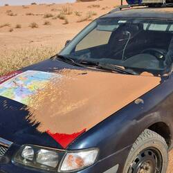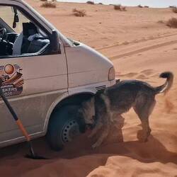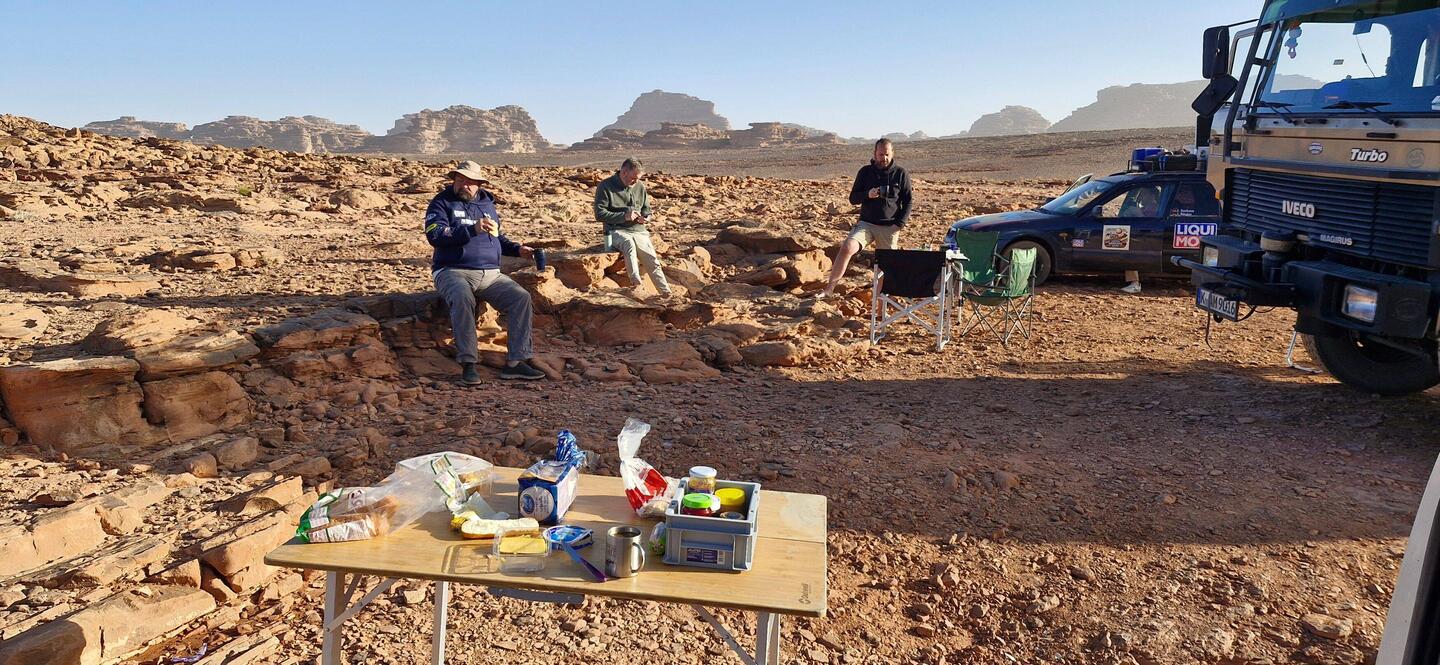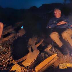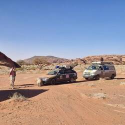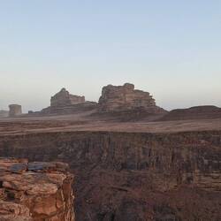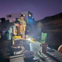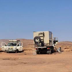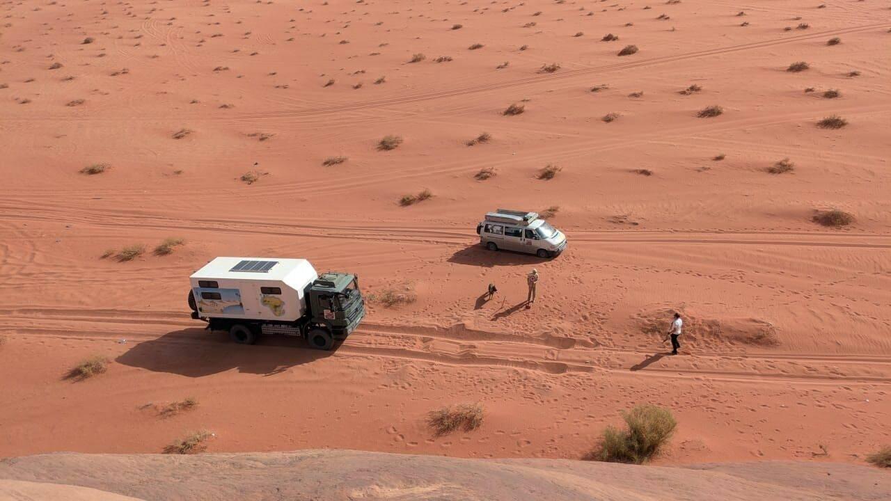 Nachdem wir erfolglos versucht haben, unsere Autos durch den Sand zu fahren, übernachten wir am Rande eines Canyons.