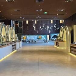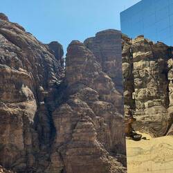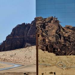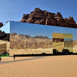 Nächste Station war Maraya. Ein imposantes Gebäude in einer Wüstensenke, außen komplett verspiegelt. Es beherbergt einen Konzertsaal, Restaurant und Verwaltung.