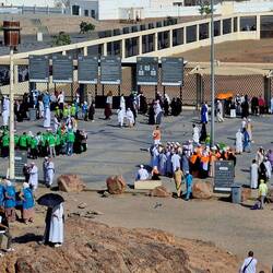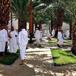 Deshalb gibt es eine Anlage, in der sich die Pilger mittels 2000 Duschen und Fußwaschanlagen frisch machen können.
