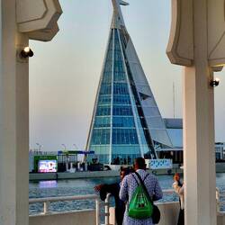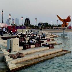 Angekommen in der Hafenstadt mit der höchsten Fontäne der Welt, höher als der Eiffelturm. Inzwischen steht hier auch der höchste Fahnenmast der Welt, der den in Duschanbe abgelöst hat.