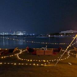 Für die Wartezeit wurden Kuhlen in den Sand gebuddelt und mit gepolsterten Bänken ausgestattet,Read more
