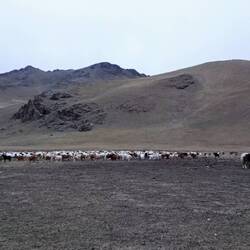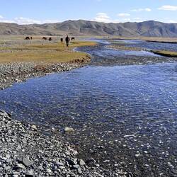 Auf in die Mongolische Steppe, durch faszinierende Landschaft, vorbei an riesigen Herden von Schafen, Ziegen, Pferden und Yaks, bis zum Nachtlager mit Familienanschluss.
