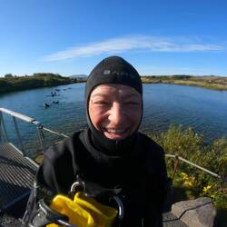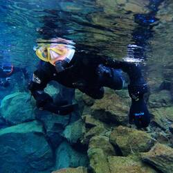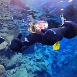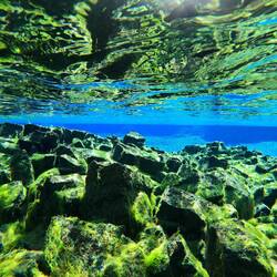 Schnorchle i dr Süesswasser-Ärdspalte ds Silfra. Ds Wasser het öpe 2 Grad - drfür isch d Sicht mega, teuwys bis zu 25 Meter🤩😉