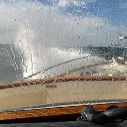 Up and away (after the Amtrak came through, of course) as the sun rose on a chilly 8C morning. English muffs and bacon, out of the marina, onto the lake, and into a brisk sou-westerly that was pretty much on our nose... 1-2 m swells. The seas increased as we progressed so that for most of the journey we had 4-5 m swells in between 1-2 m intermediaries.