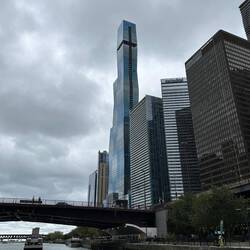 We've taken a rest day here so that I can take Rosie into Chicago and show her something of this amazing city. We Ubered across to the South Shore Railroad station and took the train into the city... the terminus being Millennium Station (originally called Randolph St Terminal, and before that Great Central Station for the Illinois Central Railroad). It was only three city blocks to the river and the river cruise docks. Although the city was absolutely buzzing with people (it was Chicago Marathon weekend... just our luck!) we managed to score three tickets on the Shoreline Cruises for an 'Architectural River Cruise".