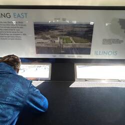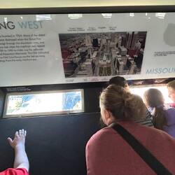 Rosie and I Uber out of town to the closest supermarket to do some grocery shopping (and to replace the fly swatter I broke when I hit an exceptionally tough fly). By the time we've taxied back to the boat and stored the groceries and provisions, it's time to go back into the old part of town--happily close to the dock--and visit the River Discovery Centre and Museum. This is compact but very well set up, includes a simulator of sorts that you can use to test your ability to drive various types of vessels--including a towboat--on the Ohio River. I was totally successful at not destroying the highway bridge. The staff were intrigued to have Australian visitors and insisted on taking a photo with us.