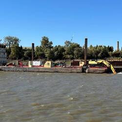 We continue downriver, past numerous barge-loading stations where heavy loads of aggregate and other bulk materials are loaded onto barge lash-ups to be pushed down the river or up to Chicago or Lake Michigan by powerful pusher tugboats.