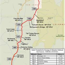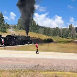 The D&SNGRR runs 45.4 miles each way between Durango and Silverton along the Animas River—one of the last free-flowing rivers in the entire western United States—during their summer season May-October, climbing 3,000 ft on a maximum 2.5% (1-in-40) grade on the northbound run. Shorter winter trips, when the entire route cannot be traversed due to snowdrift constraints and the avalanche and rockslide danger, are also provided. The route along the Animas, which rises high in the San Juan Mountains and ends in a confluence with the San Juan River in New Mexico, boasts striking canyon scenery. Throughout the season, the river will rise from around 400 cubic feet per second in April, to over 6,000 cfs at peak snowmelt runoff in June and will mellow out again in September. The train crosses the river five times on its journey to Silverton, offering spectacular views from both sides of the train. It passes fertile farmlands, follows an old stagecoach road, passes a remote hydro power plant (still-operating, they say, with its original turbines and generators), old mining camps, climbs around spectacular elevated cliff-top shelves, and is in the shadow of peaks reaching over 14,000 feet, often with year-round snow! Every summertime train is followed (at a safe distance) by a fire patrol crew on a track speeder who will extinguish any lineside fire started by the locomotive. This fire danger is mitigated by the railroad’s current program of converting their steam locomotive fleet from coal to oil (they use recycled motor-vehicle, restaurant, and industrial oil). I don’t know what the difference in ejected particulate matter is, but--as with coal-burning locomotive operation--the emissions from the stack remain reliant on the fireman’s competence.