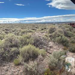 Now the line is mostly descending, and the heavy work for the trusty K-class locomotive is over. Soon, we’re winding down through the double-reverse ‘Whiplash Curve’ and Lava Loop (otherwise known as Big Horn Siding), where D&RGW snow ploughs were once stabled during winter, then down a steep scarp into a wide desert valley along which we make the final descent along a lengthy stretch of tangent track to our destination, the town of Antonito. C&TSRR passengers who might make this trip in the southbound direction will come up from Antonito through this desolate area and have no idea of the magnificent alpine scenery awaiting them.