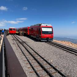 Now, the mountaineers who scaled Mt Cook, only had to ascend around 9,700 ft, since The Hermitage Hotel is already at 2,460 ft. Regarding the ascent of Pikes Peak, Denver is at 5,280 ft (not for nothing is it known as The Mile-High City), Colorado Springs, to the south, is at 6,033 ft, and the lower terminus of the Pikes Peak Cog Railway in Manitou Springs is at 6,571 ft. So the train 'only' takes you up 7,544 ft to get to 14,115 ft. Believe me, though, you're a bit breathless even walking from the carpark to the terminus!