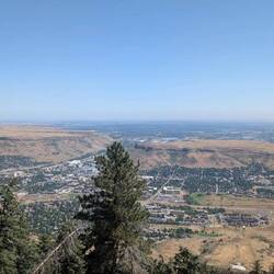 Because the Front Range landforms around Pikes Peak are themselves at such an elevation, you're not really aware by visual observation of the great height to which you're ascending. And because the 'lowest' location you can see from the summit is Colorado Springs (6,033 ft), once again, the perception of your own elevation is reduced. Pity the hazy atmosphere on the day, as we're told that when it's clear (is it ever?) you can see wind generators on the Kansas state border (with binoculars), which is about 163 miles away! There is great info and images here;