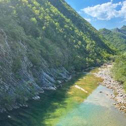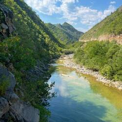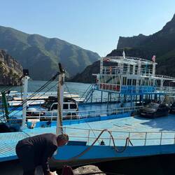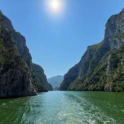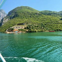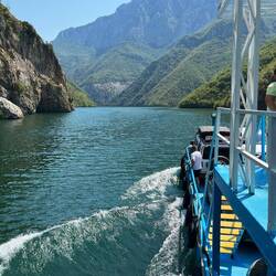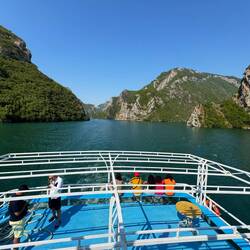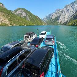 Zweieinhalbstündige Fahrt mit der Fähre über die schwarze Drin. Zwischen den Bergen hindurch.