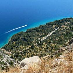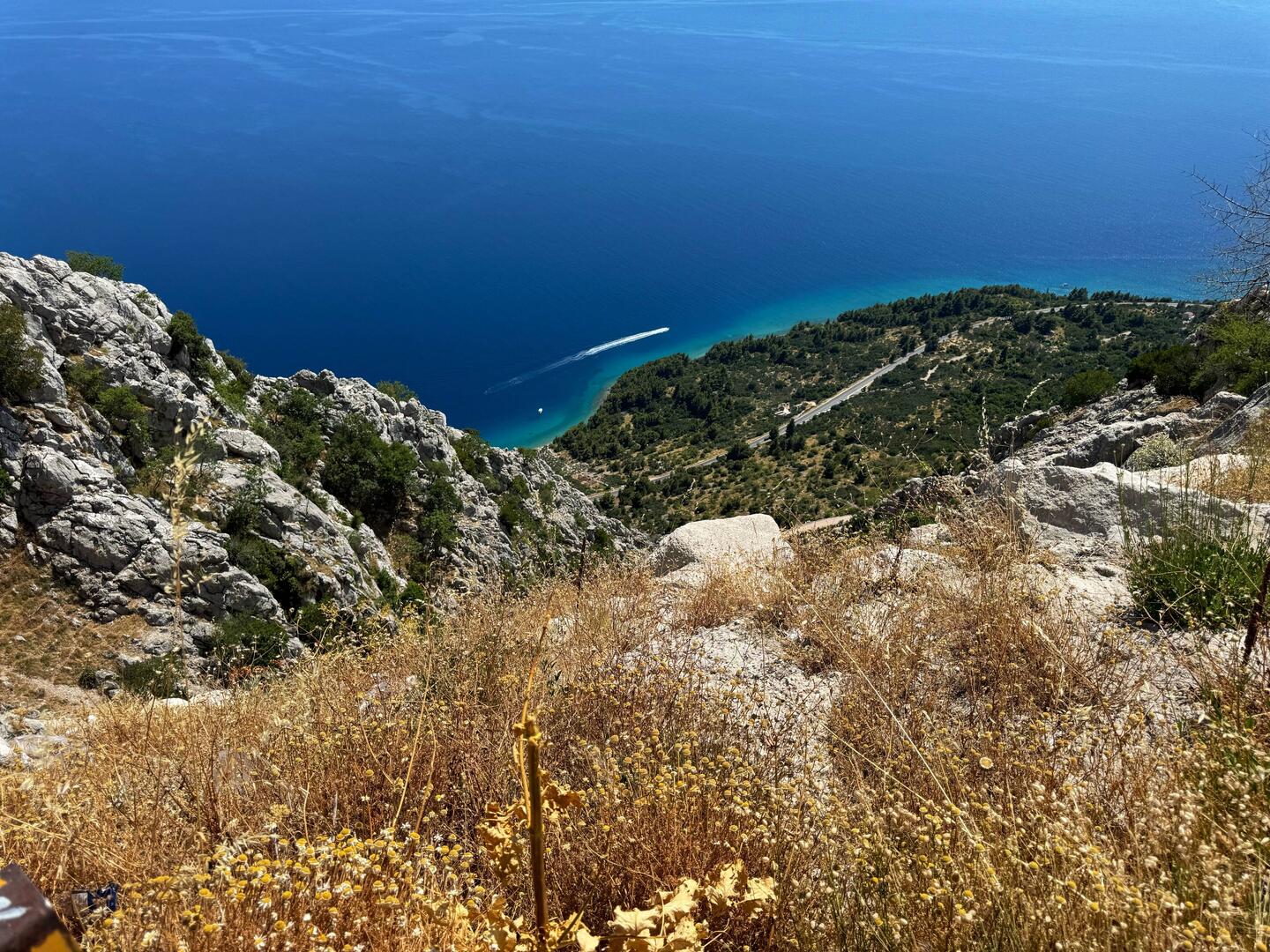 Hoch und heiß. Aber was für ein Ausblick!!! Und auch der Weg hinauf war abenteuerlich - auf der höchsten asphaltierten „Straße“ in Kroatien.