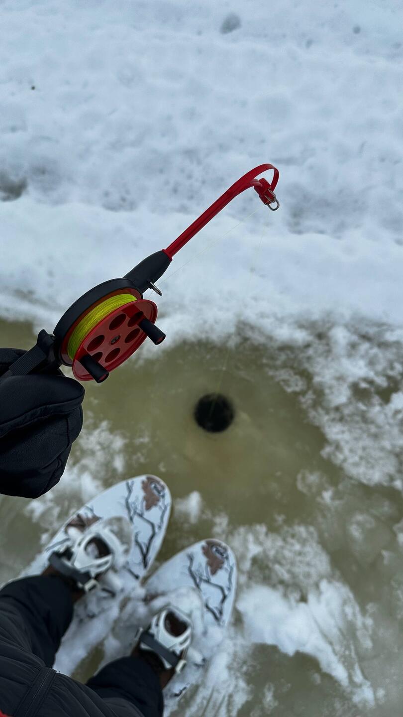 Lumikengät jalkaan, naskalit kaulaan ja kohti järveä, mikä näytti kyllä todella epäilyttävältä.