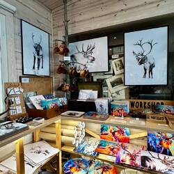 Täällä on upeita poronsarvista tehtyjä koruja sekä poro aiheisia julisteita, mitä voi ostaa itselleen.