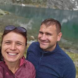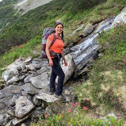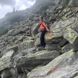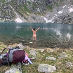 Nach dem anstrengenden Aufstieg wurde man mit einen glasklaren und 2 Grad kalten Bergsee belohnt. Dieser lud zu einer größeren Pause ein und ein Stück hat man sich auch reingetraut.