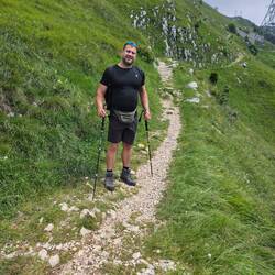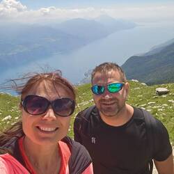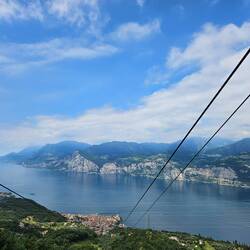 10: 15 Uhr ging es steil bergauf mit 1800 hm auf den Monte Baldo. Der Panoramaweg mit der tollen Ausicht auf dem GardaseeLes mer