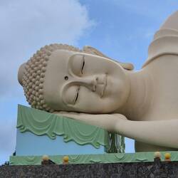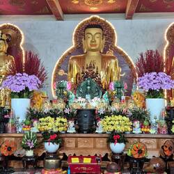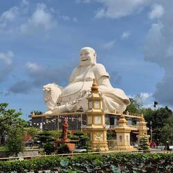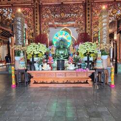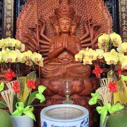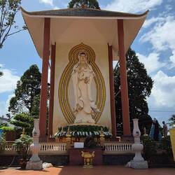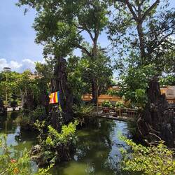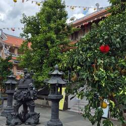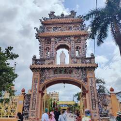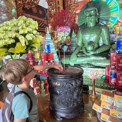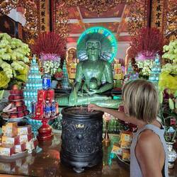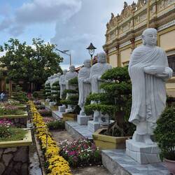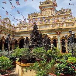 Sur le chemin pour notre balade sur le mekong, un petit arrêt à la pagode Vĩnh Tràng. Un temple bouddhiste.