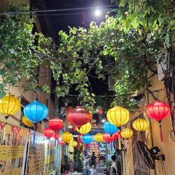 Gros coup de cœur dès notre arrivée à Hoï An, oú les lanternes illuminent la ville et donnent une atmosphère féerique