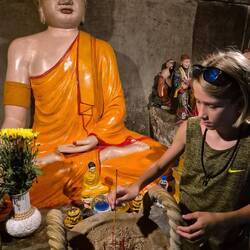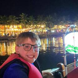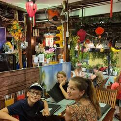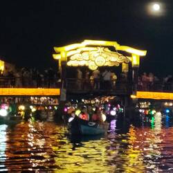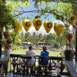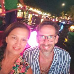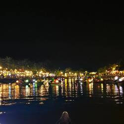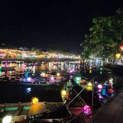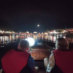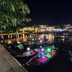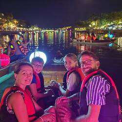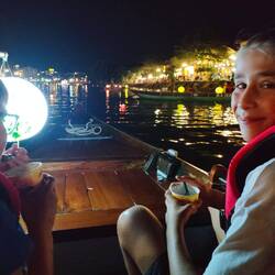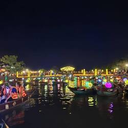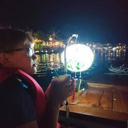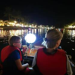 Resto, balade et petite virée sur la rivière Thu bôn, illuminée aux lanternes. Moment magique !