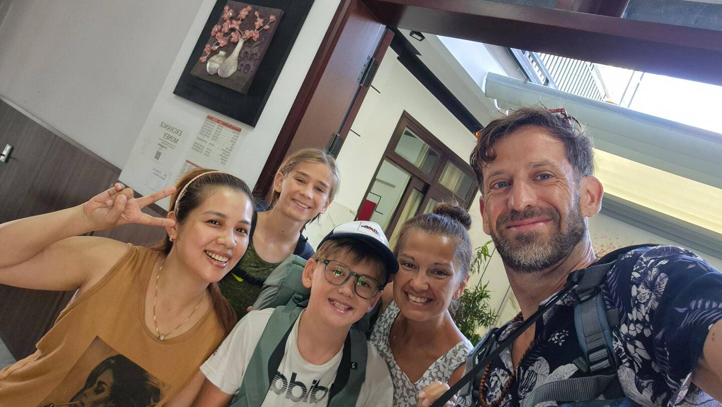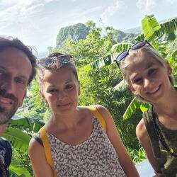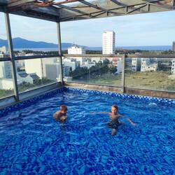 Un petit saut a la piscine, une photo avec notre hôte : Thao et en route.