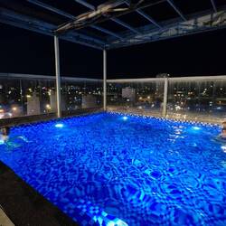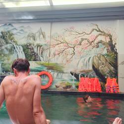 Après avoir choisi le repas pour un plateau TV — oui, ce soir, c’est plus calme. Un long trajet nous attend demain ! Petit plongeon dans la piscine située au 7ᵉ étage. Nous avons la chanceLæs mere