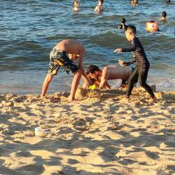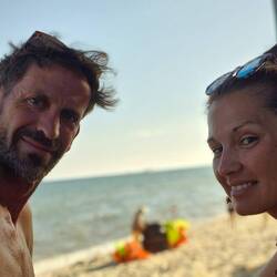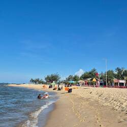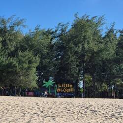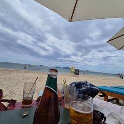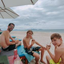 Baignade à la plage de Thuân An, plus connue sous le nom de Little Hawaï !!! Plage essentiellement fréquentée par les locaux, c'est ce que l'on voulait.