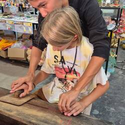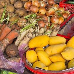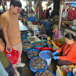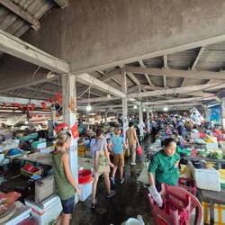 Avant de commencer notre activité, nous partons faire les courses avec le chef du restaurant.
