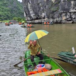 Croisière Tam Côc, littéralement traduit par "trois grottes" en vietnamien. C'est un système de grottes formées par l'érosion au fil du temps, par la rivière Ngô Ðông. Un moment magique,Leggi altro