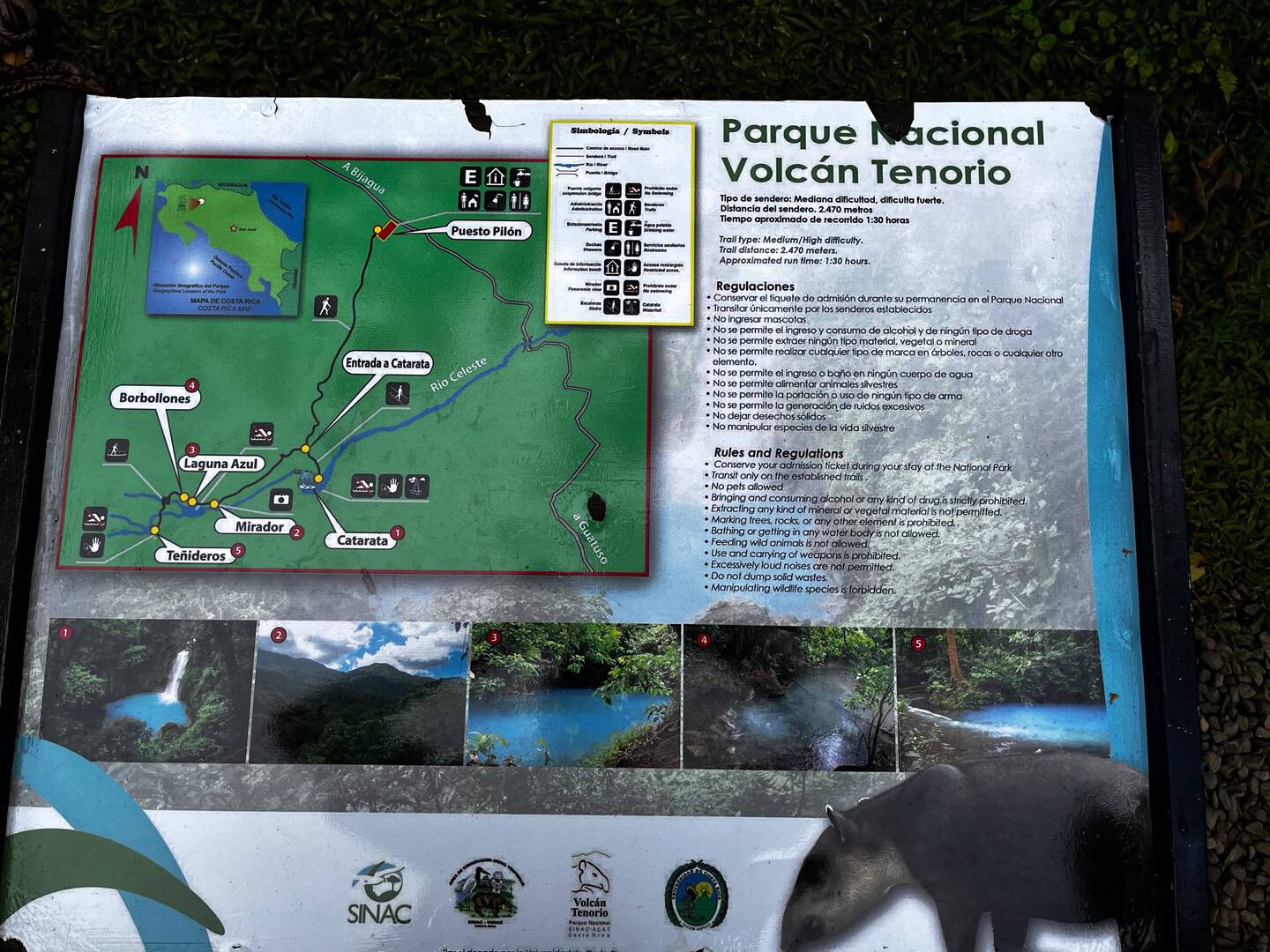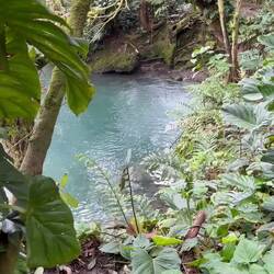 Trail moyen difficile dans le volcan Tenorio. Cascade Catarata avec 250 marches puis laguna Azul.