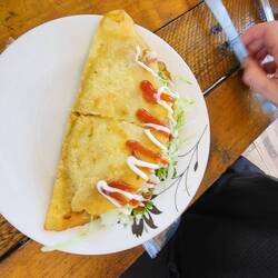 Après 4h de randonnée, le petit soda est le bienvenu! Bière mélangée avec coca et glace. Repas sympa tout simple comme d’hab.