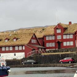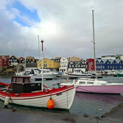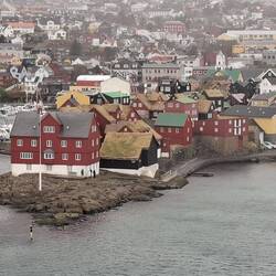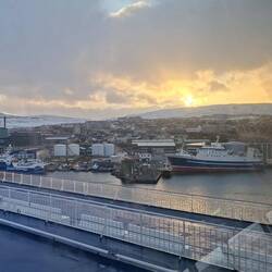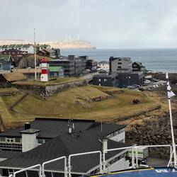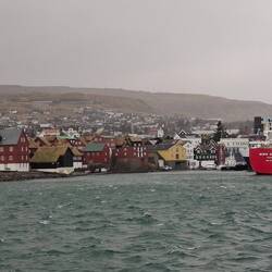 La météo est tellement catastrophique et extrême entre les îles Féroé et l'Islande (tempête et mer déchaînée avec une houle de 10 à 12m), que le capitaine et sa compagnie ont décidé que le bateau va rester 48h caché à l'abri au port des îles Féroé qu'on atteindra cette nuit. Arrivée en Islande prévue du coup non plus mercredi 9h, mais jeudi 18h !