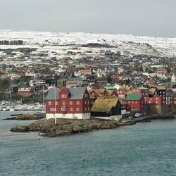 Vous connaissez le drapeau blanc avec une croix scandinave rouge bordée de bleu ? C'est le drapeau des îles Féroé, archipel subarctique du Nord de la mer du Nord, aux confins de la mer de Norvège, à mi-chemin entre l'Ecosse et l'Islande, et l'un des trois pays constitutifs du royaume de Danemark, avec le Danemark lui-même et le Groenland. C'est ici que notre bateau passe sa "quarantaine", dans l'attente de la fin de la tempête islandaise.