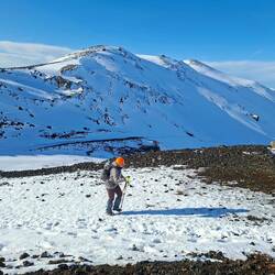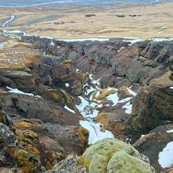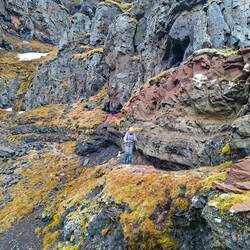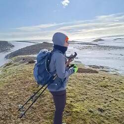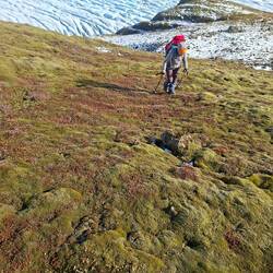 Enfin dernière raison, un hors-piste tous terrains (ça nous manquait le hors-piste 😉) : basalte, mousse, neige, glace, touffes d'herbes jaune d'or de steppe, marécages et trous d'eau de dégel, sable volcanique, et même grosse merdasse où on s'enfonce jusqu'à la cheville ! Et cela, dans un terrain très accidenté, en nous dirigeant à l'expérience dans les dédales et les chaos, et en inventant au fur et à mesure notre chemin... Physique, improvisé et original, on adore ça !
