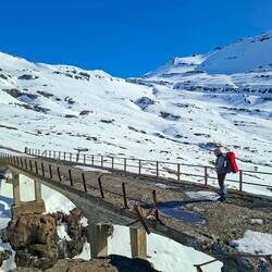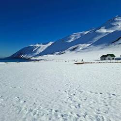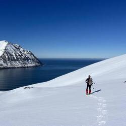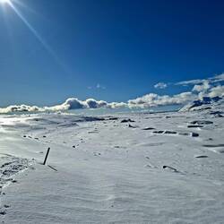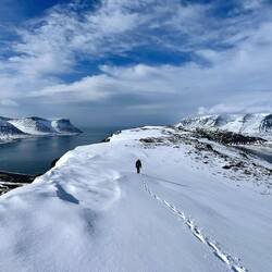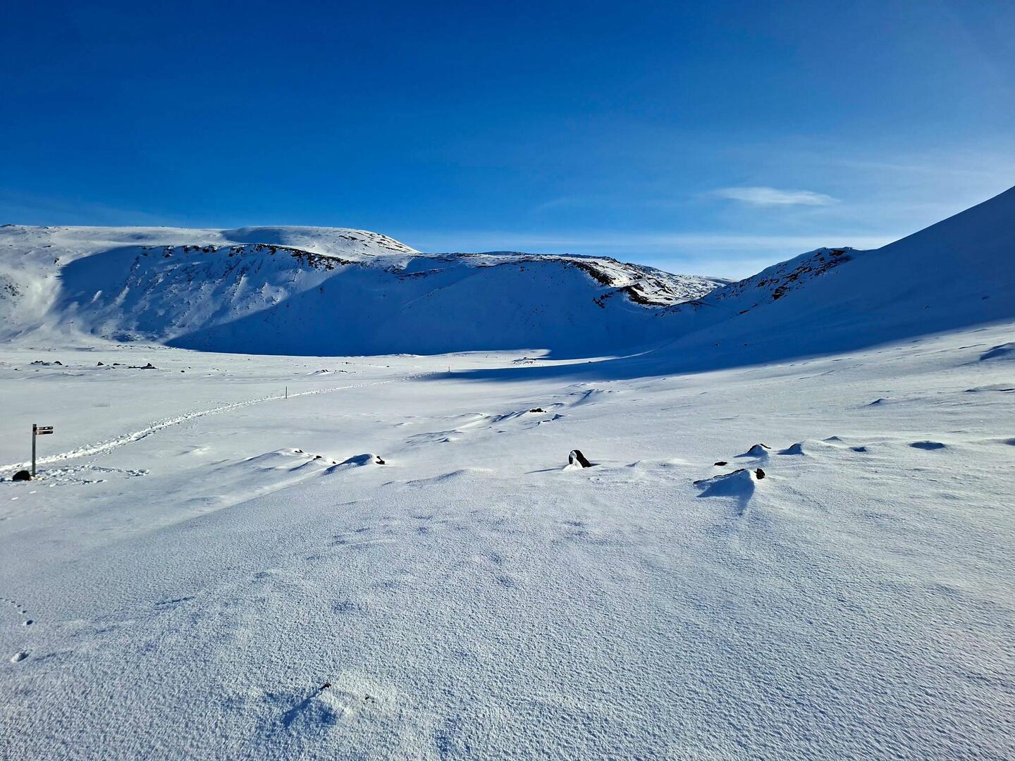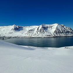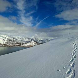 Vite, profiter de cette journée bleue intense (le ciel et le fjord) et blanche immaculée (la neige) annoncée ! Et on a bien fait d'y croire, le temps était superbe et super chaud avec 6 degrés à l'ombre 🥵🤩 !